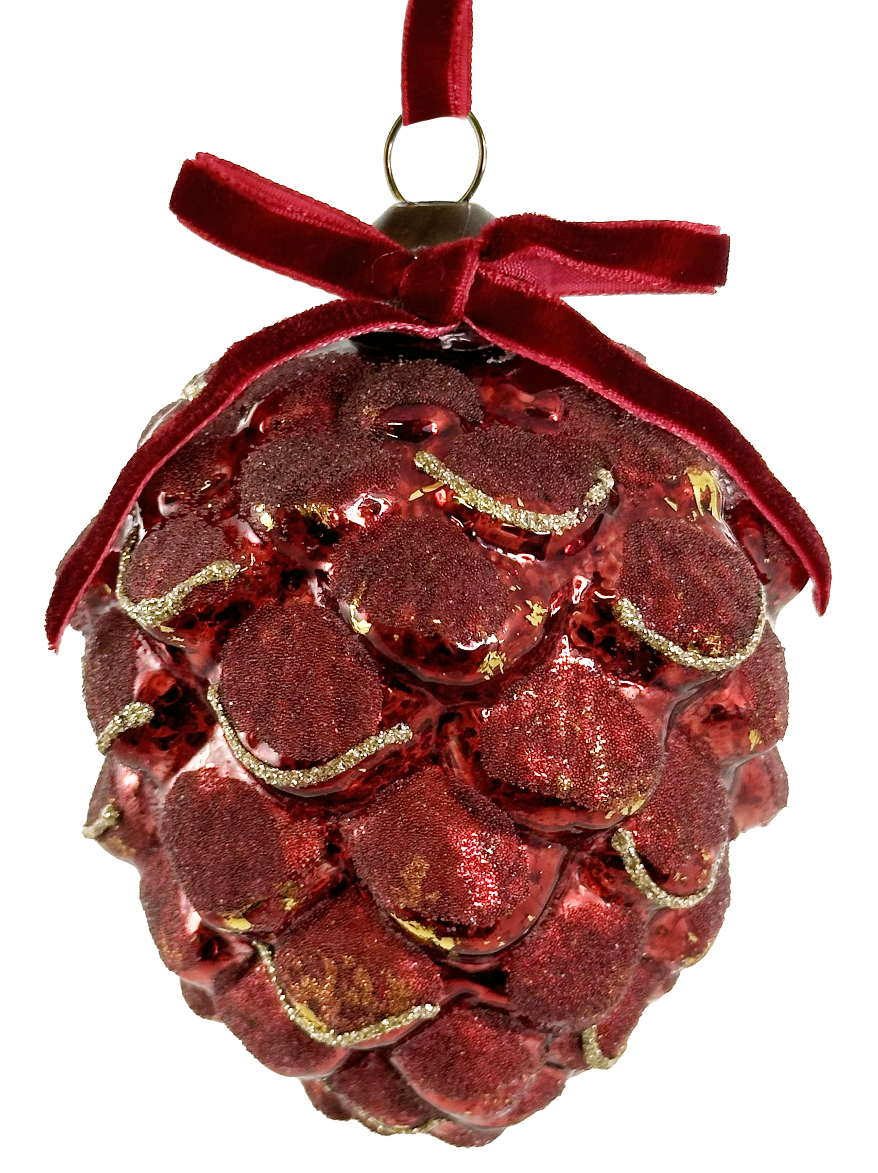 Cône rond en verre antique brillant rouge feuille d’or perlé 9 cm – lot de 2